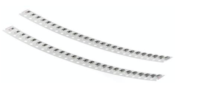 As its name implies, cut tape packaging delivers components in small, cut-up pieces of tape. They are all separate from one another and the operator must hand place each piece individually.